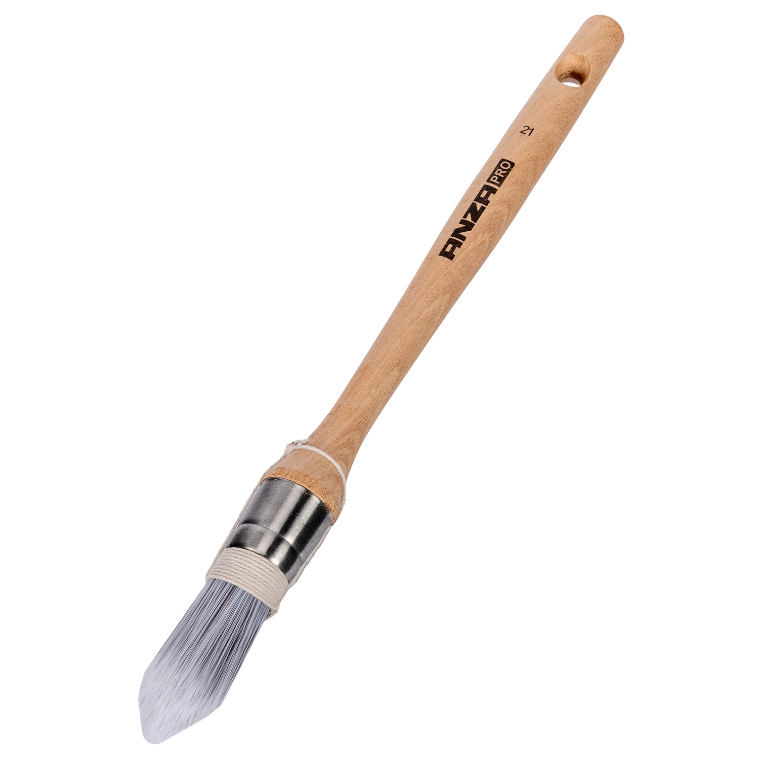 De Anza Pro Super Point kwast is gemaakt voor precisiewerk op verfijnde ondergronden. Dankzij de hoogwaardige synthetische hybride vezels werk je strak en gecontroleerd met zowel watergedragen als synthetische lakken. De verf wordt goed opgenomen en gelijkmatig afgegeven, wat zorgt voor een nette afwerking zonder strepen. De smalle puntvorm maakt het makkelijker om nauwkeurig te schilderen in hoeken, langs randen of op kleine oppervlakken. De volgegoten rvs/inox bus voorkomt dat water of terpentine in de steel dringt. De beukenhouten steel ligt prettig in de hand en geeft je maximale controle bij elk detail. Ideaal voor afwerking met veel precisie.
